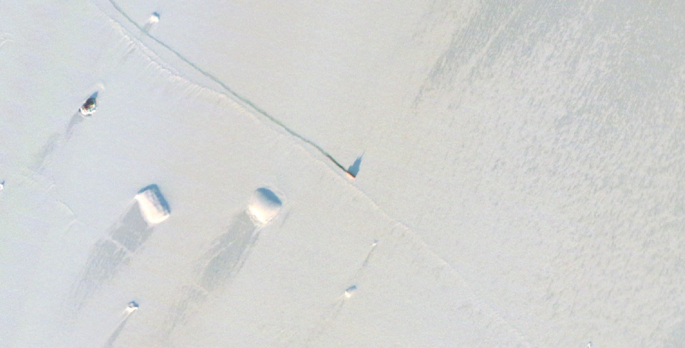 中野:ここで、衛星画像を一つ紹介させてください。2021年にGRUS-1が撮影した南極の画像で、中央に南極観測船「しらせ」が写っています。中央の物体の影は船の形になっており、氷を砕いて進んだ跡が見えます。日本からはるか遠く、人が住んでいない場所に人の活動の姿が見えるこの画像は、地球のダイナミックさを伝えています。