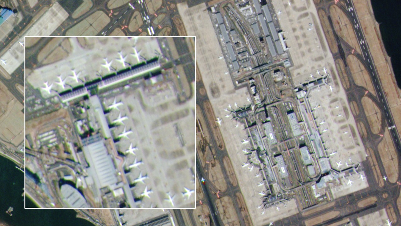 丹波:量販店に並んでいるようなデジタルカメラの一つ一つの部品を衛星用にカスタマイズしています。宇宙といっても遠い存在ではなく、意外と身近な技術が使われていますよ。GRUS-1が撮影する画像の細かさは中分解能と呼ばれ、空港に並ぶ航空機の種類を識別できるほど鮮明です。その細かさは、望遠鏡や搭載する衛星の大きさによって変わります。